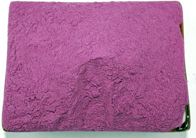 1、紫薯全粉因含有天然色素——花青素,色澤艷麗自然,添加至各種食品中,具有很好的著色效果,適合中高檔次食品中使用。